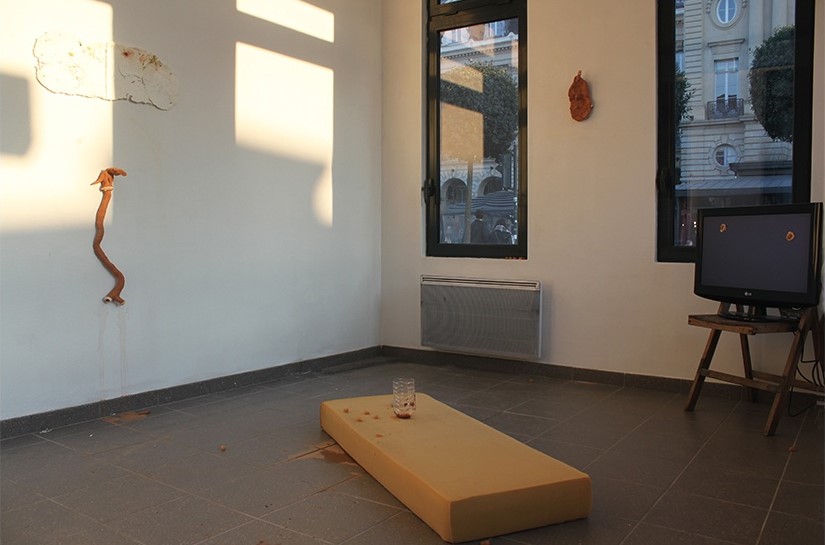 Ces installations seraient, comme définissait Parmiggiani à propos de ses œuvres, des « théâtres où c’est le silence qui est représenté ». L’exposition est une mise en scène de notre vie quotidienne, de ces choses insignifiantes qui la traversent un cours instant. A la fois silencieux et mouvant, le kiosque s’anime aussi par l’activation des corps dans l’espace. Du diorama, il se métamorphose alors le jour suivant en vivarium. Des performeurs répètent une performance ou déambulent librement, activent et interagissent avec les objets. Georges Didi-Huberman, à propos de ce souffle propagé dans l’espace par l’artiste, parlait de « la mise en mouvement du lieu, façon de le mettre en travail et en fable » (p. 34, G. Didi-Huberman , Génie du non-lieu) Puis le temps se suspend. Il s’agit de voir la matière s’altérer et d’écouter une voix nous parler des veilleur.e.s de nuit ou bien encore de s’arrêter sur l’éveil du matin. Les journées dédiées aux artistes s’identifient à cette heure bleue matinale, furtive et incandescente, mais qui s’étalent finalement dans le temps pour s’éteindre 24h plus tard. Les installations deviennent des objets de l’attente qu’il faut aller voir dans l’urgence car demain, elles auront été remplacées par une autre, puis une autre. Urgence du déplacement du passant-spectateur, urgence de l’action par l’artiste, urgence de la mémoire, du souvenir. C’est aussi accepter de ne pouvoir tout voir, prendre conscience d’être spectateur à son insu, devenir transitoire soi-même et apparaître dans ce non-lieu.