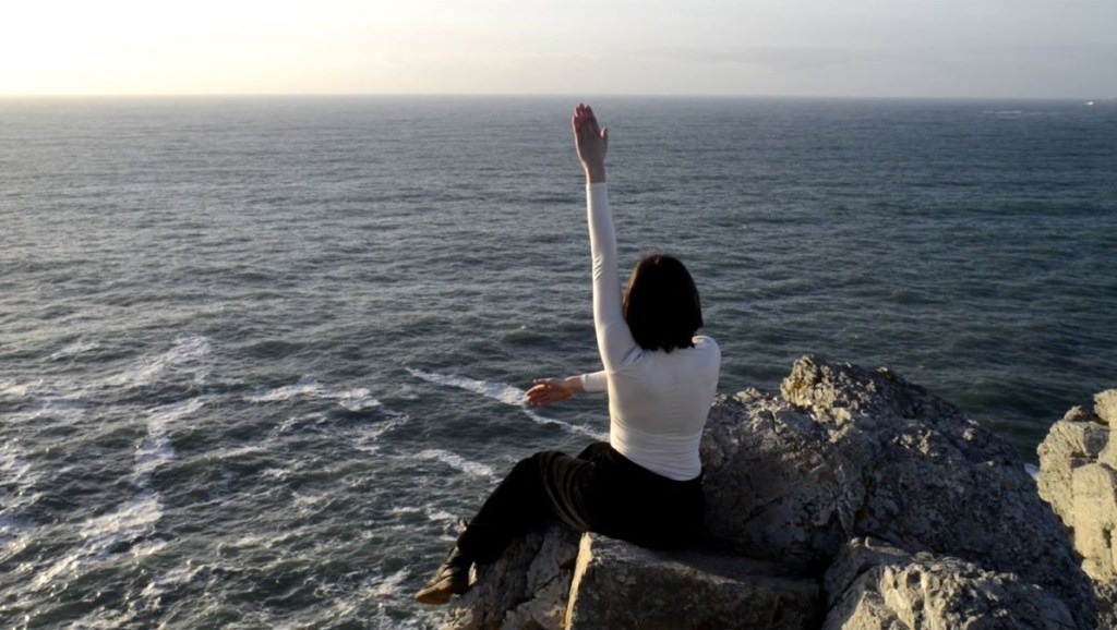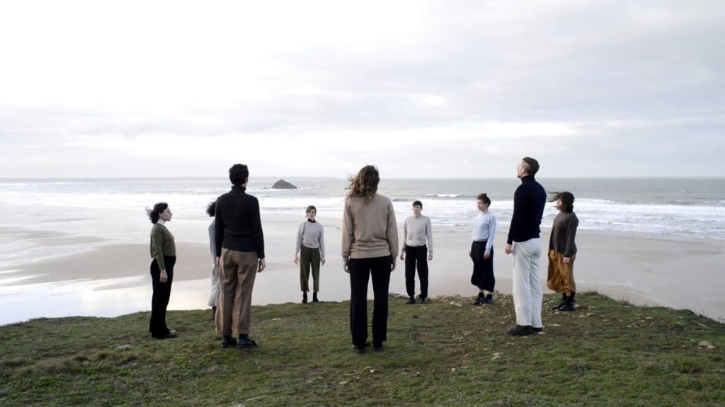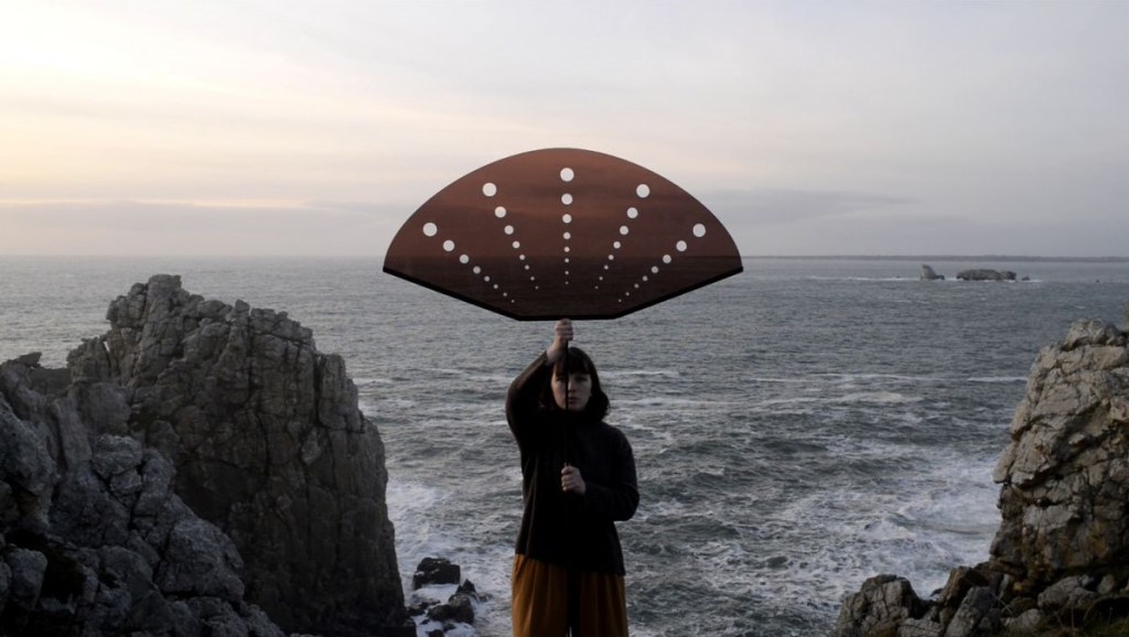 Le poème Ode maritime de Fernando Pessoa agit comme matière expressive au déploiement du sémaphore. Le vers « je veux partir avec vous partout où vous êtes allés » devient une grande phrase en acier de 12m. Elle s’approprie donc ce langage visuellement et graphiquement afin d’évoquer le rapport du corps et de l’humain à la mer. Dans une perspective de totalité de l’installation et de la monstration des œuvres, elle sort la sculpture de son espace d’exposition en lui donnant vie sur la presqu’île de Crozon, comme une « adresse à la mer ». En résulte L’immensité avec vous, un film aux plans fixes inspirés du cinéma de Philippe Garrel (La cicatrice intérieure) perpétuant l’illusion du tableau vivant, interprété par un groupe d’étudiants de l’EESAB de Brest. Elle considère les plans comme des « petites capsules autonomes juxtaposées les unes aux autres mais sans narration précise et dans un ordre qui n’est pas forcément consécutif mais poétique entre jeu de couleurs et de formes liées au paysage. »