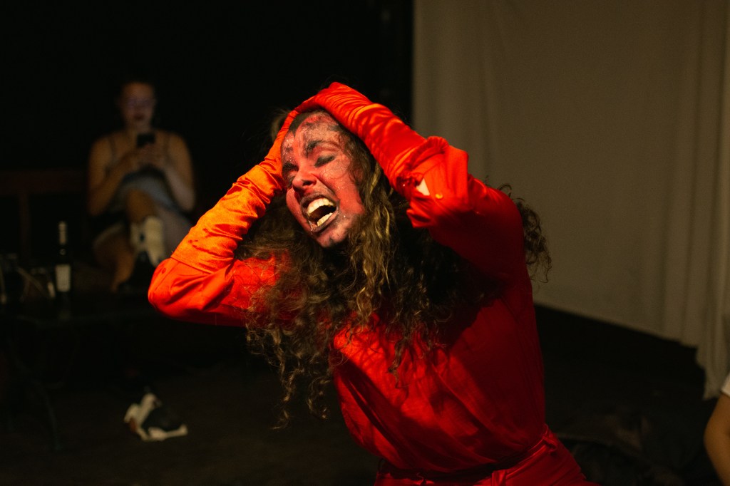 Affublé.e de couleurs sentimentales, symboles religieux ou médiévaux et chorégraphiant ses mouvements sur des collages sonores nommés « fictions audios », iel amène les spectateurs dans des univers uniques qui les laissent aussi libres d’interprétation. Découvrez des extraits dans les différents épisodes du podcast de Garçon carrière, Count von Count, Lady Oscar, Feu, etc.) Ce rapport au public est très important pour iel : « le régime d’attention du public est très différent : le rapport de hiérarchisation entre la scène et « la fosse », le statut de performeur qui est beaucoup plus proche de celui des spectateurs qu’il ne l’est quand on est dans un white cube ou alors lorsqu’on est au théâtre dans une pièce classique, avec une scène surélevée. Là, tout le monde est à peu près au même niveau, non seulement d’un point de vue physique, car en général la scène est très basse ou inexistante, et aussi au même niveau socio-économico-culturel : les personnes queer et les artistes queers sont souvent précaires. On est aussi là à produire pour notre propre communauté. Il y a une espèce de cycle, vu que c’est ouvert à tout le monde : tous celleux qui ont été spectateur.rices hier peuvent devenir performeur.euse demain et vis-versa. »