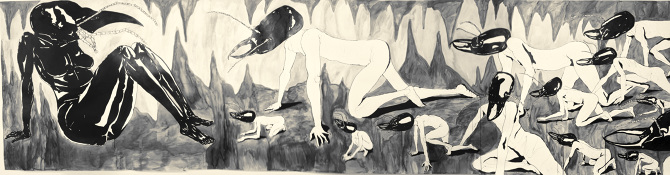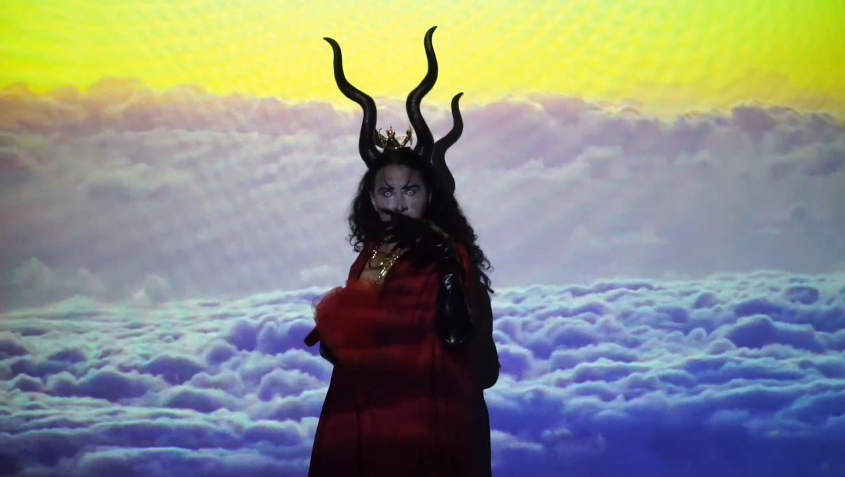 Se dessine une envie de transformation à travers la malléabilité de ces formes qu’iel va chercher jusque dans son enfance, notamment avec la figure de Maléfique. Ce personnage lui aussi sombre et torturé, tiré de la Belle au bois dormant, intéresse l’artiste par sa capacité de métamorphose. Elle se change par magie en dragon dont la faculté des apparitions multiples se rapproche du drag en général et de celui de Sasha Kills en particulier. « En tant que personne queer, c’est assez commun de s’identifier dans les dessins animés aux personnages dits déviants et négatifs. Je m’identifiais plus au personnage de Maléfique car elle est damnée puis elle cherche sa vengeance. C’est surtout ce coté paria, mis à part et pour se venger des personnes qui l’ont oppressée, qui m’intéresse. Arriver à surmonter des traumatismes par l’art a toujours été quelque chose de très important dans ma construction. »