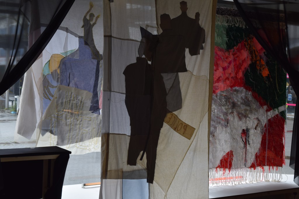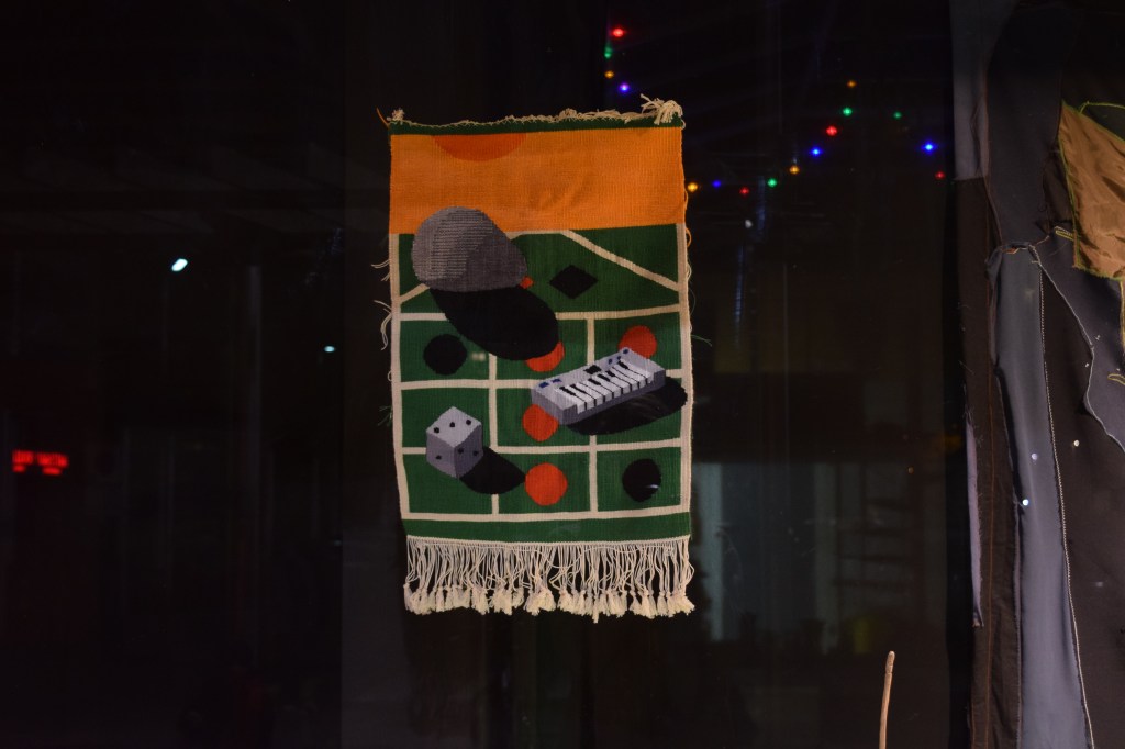 Les artistes Elise Drevet, Naïma Rass, Pauline Rouet et Bettina Saroyan investissent une ancienne pharmacie de Saint-Herblain. Occupant la vitrine de leurs ateliers, elles exposent leurs œuvres tissées, porteuses de signes multiples. Inspirées par le contexte électoral, elles ont créé à la lumière des rouages d’une politique bien ficelée. Le discours politique s’impose comme un fil supplémentaire avec lequel elles tissent. Conscientes des enjeux sociaux, politiques et écologiques qui se trament, elles approchent la réalité en invoquant les voies de la symbolique. Quelle place donner à l’imposture d’un système réglé par avance ? Il vous faudra jouer avec les cartes distribuées. La vitrine se trouve être un passage où filer la métaphore devient le mot d’ordre. Le tissage s’affirme alors en un moyen de communication afin d’entrelacer les luttes en marge et les rapports humains. Les artistes nous invitent à observer le monde tel qu’il est formé par avance et les pions tels qu’ils ont été triés sur le volet. L’échiquier et ses règles biaisées presque à découvert. Une partie des joueurs reste sur la touche et est contrainte d’observer, impuissante. Animées par le texte critique de Gébé ayant précédé l’élection de Valéry Giscard d’Estaing en 1974, ces œuvres nous accompagnent pour percer à jour le système des élections présidentielles qui modèle à l’envie le dé et le réduit au minimum des possibilités.